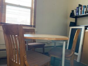- Outlets, 2 Comfy Chairs, 1 table, 2 Roller chairs.